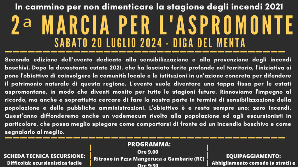 L’Aspromonte si prepara ad ospitare la seconda edizione dell’evento dedicato alla sensibilizzazione e alla prevenzione degli incendi boschivi. Dopo il devastante periodo di incendi dell’estate 2021, che ha lasciato ferite profonde nel territorio, l'iniziativa si pone l'obiettivo di coinvolgere la comunità locale e le istituzioni in un’azione concreta per difendere il patrimonio naturale di questa regione.