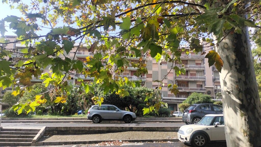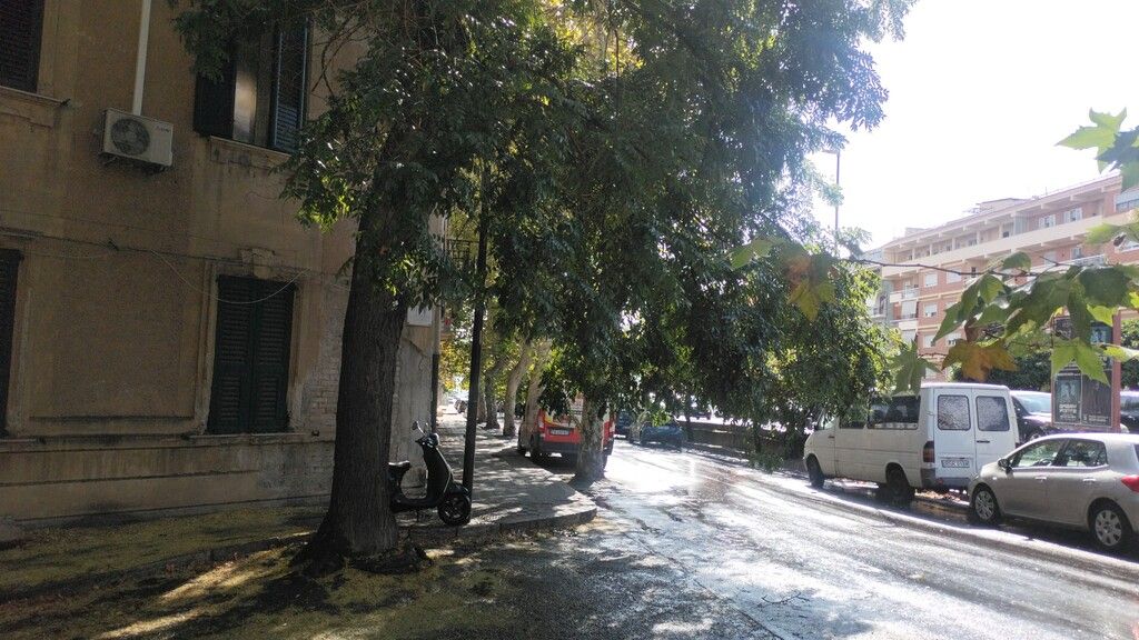 In Via Vespucci e Viale Umberto Boccioni la situazione non é tanto diversa da quella del centro storico. La pioggia odierna ha ulteriormente appesantito i rami degli alberi, avvicinandoli pericolosamente al suolo.