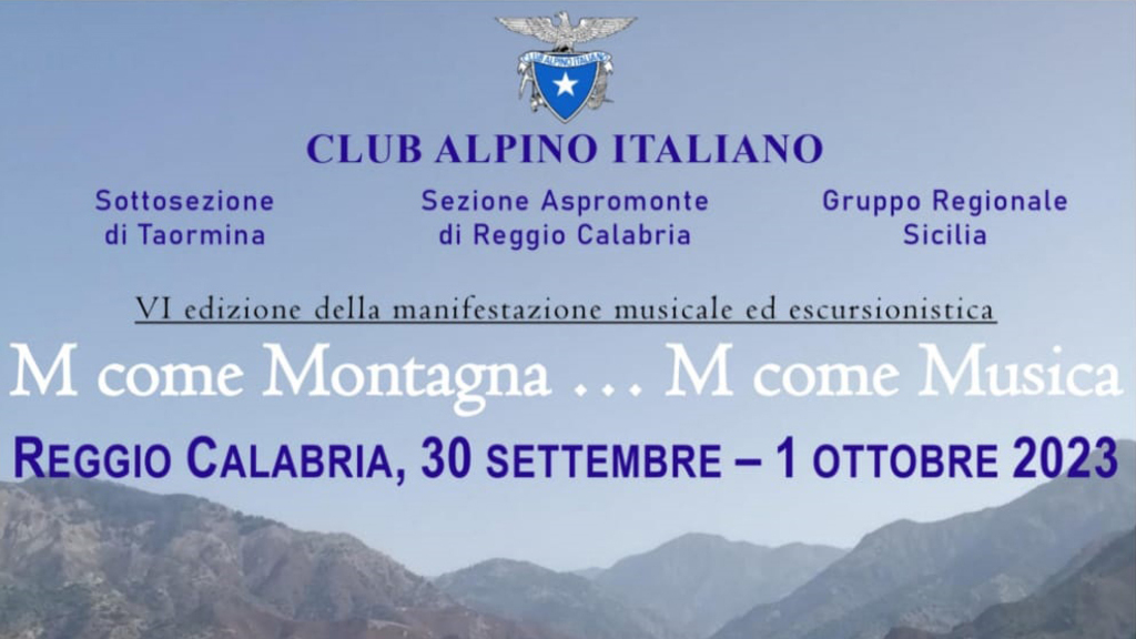 I prossimi 30 settembre e 1 ottobre, la Sezione CAI Reggio Calabria - riferisce una nota - ospiterà sul territorio la VI edizione della manifestazione musicale ed escursionistica “M come Montagna … M. come Musica”. L’evento è stato ideato nel 2015 dalla Sottosezione CAI di Taormina e, nel corso delle varie edizioni, è stata organizzata in località siciliane sempre differenti. Quella di quest’anno è una edizione straordinaria dal momento che, in via del tutto eccezionale, viene ospitata per la prima volta al di fuori del territorio siculo.