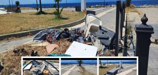Materiale di ogni tipo accatastato sulla spiaggia e sui marciapiedi