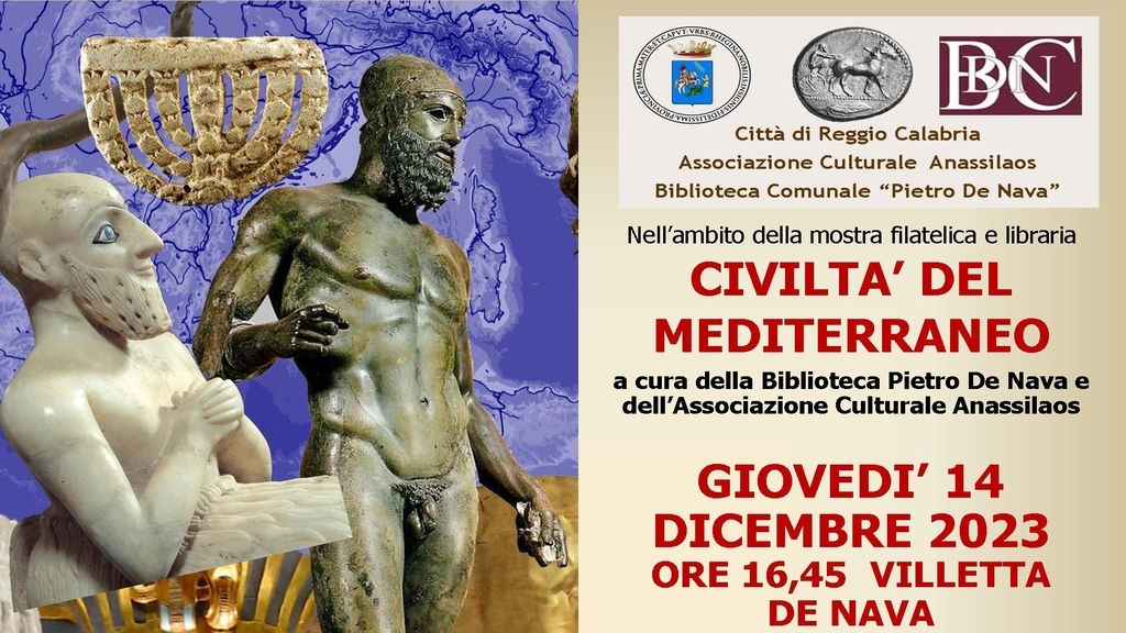 Si terrà giovedì 14 dicembre alle ore 16,45 presso la Villetta De Nava il secondo degli incontri previsti nell’ambito della mostra filatelica e libraria “Civiltà del Mediterraneo” promossa congiuntamente dall’Associazione Culturale Anassilaos e dalla Biblioteca “P. De Nava” con il Patrocinio del Comune di Reggio Calabria, che è stata inaugurata il 7 dicembre scorso con la partecipazione di Daniela Neri, Responsabile della Biblioteca, di Cristina Iracà, Referente per la Filatelia di Poste Italiane, che si è soffermata sull’annullo filatelico concesso all’evento e di Fabrizio Sudano, Soprintendente Archeologia, Belle arti e Paesaggio per la città metropolitana di Reggio Calabria e la provincia di Vibo Valentia, che ha anche preso parte alla conferenza di presentazione delle più recenti scoperte archeologiche in Aspromonte che ha registrato, tra gli altri, l’intervento del Vicesindaco di Bova Gianfranco Marino, del Dott. Giorgio Cotroneo, funzionario del Parco e di Lino Licari che del Parco è guida, nonché del Prof. Daniele Castrizio, e del Prof. Riccardo Consoli che ha relazionato sul tema. Tre i momenti previsti in questo secondo incontro, che sarà condotto da Fabio Arichetta, Responsabile del Centro Studi Anassilaos: una riflessione della Prof.ssa Annunziata Rositani, Associato di Storia del Vicino Oriente Antico e Cultura e Letteratura del Vicino Oriente Antico presso l’Università di Messina sull’“L’apporto delle Culture dell’Oriente Antico alla civiltà del Mediterraneo”, che è il tema della mostra; l’illustrazione, a cura del Circolo Filatelico di Anassilaos, del valore bollato dedicato ai Bronzi di Riace che sarà emesso il 12 dicembre, che segue i due francobolli già emessi nel settembre 1981 in occasione del loro restauro e quello del marzo 2005 nell’ambito della emissione dedicata alla Regione Calabria ed infine l’ intervento del Prof. Eligio Daniele Castrizio, Ordinario di Iconografia e Archeologia della moneta e Iconografia e storia della moneta antica, che alle due statue ha dedicato importanti studi e ricerche, sul tema “Nuovo contributo alla conoscenza dei Bronzi di Riace”. La mostra durerà fino al prossimo 19 gennaio e si inserisce in quel campo di ricerca della “percezione dell’antico” che è al centro della riflessione del Sodalizio reggino che nel rilanciare i valori dell’Antico in una città che è stata greca e latina non vuole lodare acriticamente un passato lontano e sia pure glorioso nel ricordo del quale rassegnarsi ad un presente difficile e complesso, quanto avviare un processo di crescita culturale – che può anche essere economico e sociale – facendo tesoro di quel passato.