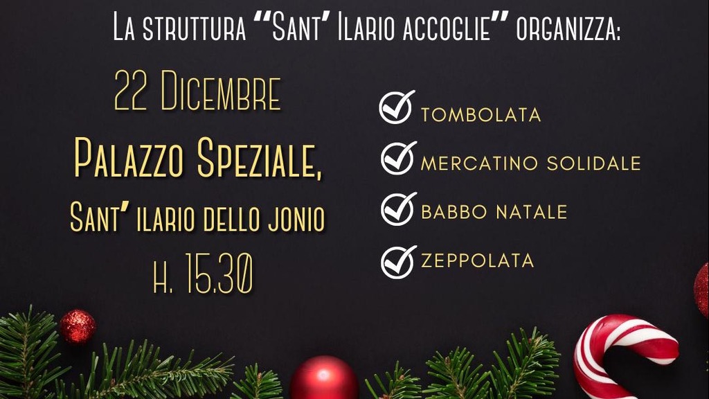 Natale multietnico e solidale a Sant’Ilario dello Ionio, grazie alle cooperative sociali Eurocoop Jungi Mundu e Pathos che, con il patrocinio dell’amministrazione comunale, per giovedì 22 dicembre, dalle ore 15.30, nelle sale di Palazzo Speziali-Carbone, hanno organizzato una grande tombolata. Operatori e beneficiari dei progetti di accoglienza, amministratori e cittadini insieme per una festa natalizia all’insegna della multiculturalità. Oltre alla classica e immancabile estrazione di numeri che coinvolge sempre tutti, sarà allestito un bellissimo mercatino solidale, si potranno gustare le graditissime zeppole e, alla fine, arriverà anche Babbo Natale. L’invito è per tutti!
