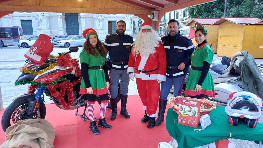 La delegazione di Reggio Calabria del moto club della Polizia di Stato, nella giornata di ieri, ha dato vita all’iniziativa “scatta una foto con Babbo Natale in moto”. L’evento si è svolto in piazza Duomo, all’interno di uno spazio reso disponibile, per l’occasione, dal Comune di Reggio Calabria. Ad ogni bambino che si è avvicinato per la foto con Babbo Natale, oltre all’emozione di un abbraccio, è stata donata la foto istantanea ed un pensierino che da soli hanno estratto dal sacco dei doni. Presenti per l’occasione anche le nostre nibbio. Nei prossimi giorni, la stessa delegazione, consegnerà ai piccoli pazienti del reparto oncologico dell’ospedale reggino, dei sacchetti di dolciumi donati dal nazionale Moto Club Polizia di Stato.