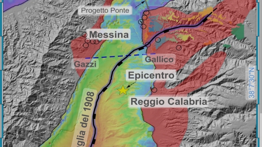 L”ecografia’ del fondale ha consentito di individuare in modo inequivocabile una profonda spaccatura nel fondale dello Stretto di Messina. La faglia mostra evidenze di attività recente poiché disloca il fondale marino con scarpate fino a 80 metri di altezza. La struttura corre lungo l’asse dello Stretto ed è individuabile a circa 3 km dalle coste della Sicilia alla latitudine di Messina, la spaccatura curva verso Est penetrando nell’entroterra calabro per proseguire poi lungo l’asta fluviale del torrente Catona, una incisione fluviale tra Villa San Giovanni a Nord e Reggio Calabria a Sud. La faglia è inclinata verso Est e raggiunge la lunghezza massima di 34,5 km. Secondo le relazioni lunghezza-magnitudo, la faglia è in grado di scatenare terremoti di magnitudo 6.9, una energia molto simile a quella liberata durante il terremoto del 1908. La ricerca affronta inoltre il meccanismo all’origine dell’allontanamento in atto tra la Sicilia e la Calabria (circa 3,5 mm all’anno), individuandone il motore nelle profondità crostali. Questo movimento avverrebbe sotto l’effetto della gravità ed in maniera quasi asismica, ma incoraggerebbe la rottura fragile di alcune faglie più superficiali.