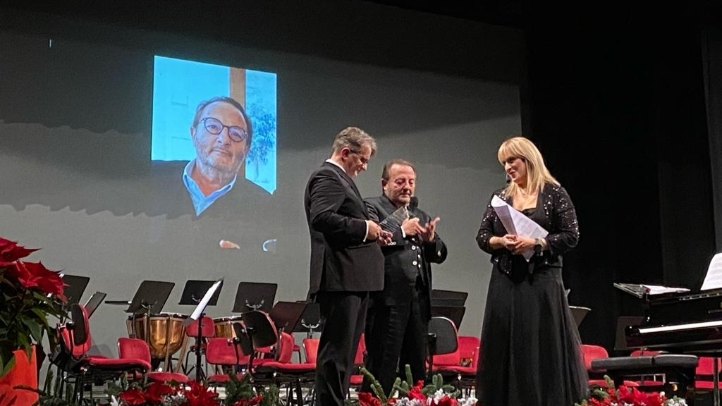 A metà dello spettacolo, il Dr. Costarella, il dr. Scaffidi, e il dr. Francesco Araniti, Direttore Amministrativo Aziendale del G.O.M., hanno consegnato delle targhe di riconoscimento ai prof.ri Riccardo Mazzitelli e Carmine Zoccali, primari in pensione dell’Azienda Ospedaliera di Reggio Calabria, per il grande lustro portato alla città con la loro attività medica, di formazione e di ricerca. Assente, invece, per motivi personali, il dr. Antonino Nicolò, già primario di Neonatologia, al quale il G.O.M. ha riservato il medesimo riconoscimento e verso il quale esprime vicinanza e affetto. A ritirare il premio, in sua vece, la figlia Carmelita, accolta con caloroso affetto dal Commissario Straordinario, il dr. Scaffidi.