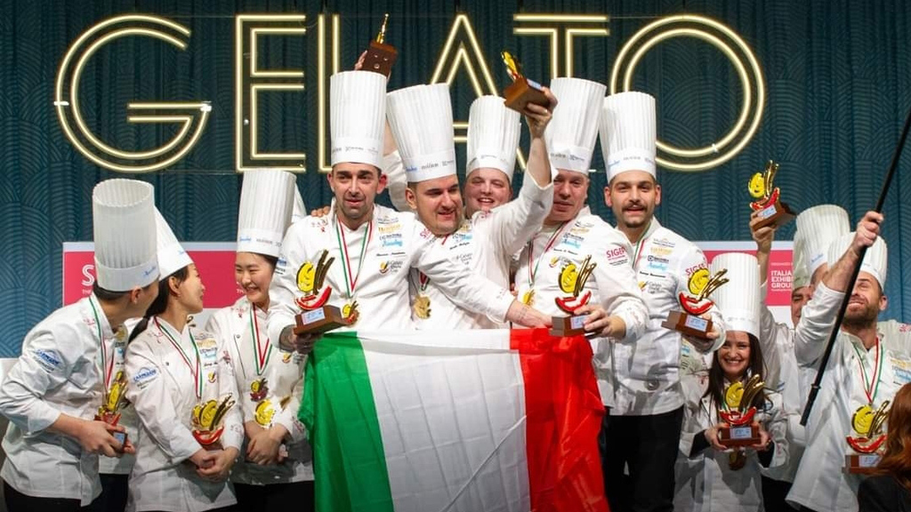 Sventola il Tricolore alla 45esima edizione di Sigep, 11 nazioni da tutto il mondo (Argentina, Brasile, Cina, Corea del Sud, Germania, Italia, Perù, Singapore, Taipei cinese, Ungheria e Messico) hanno gareggiato alla Gelato World Cup, organizzata da Gelato e Cultura e Italian Exhibition Group, con cinque concorrenti per ogni squadra. Quella italiana era composta da Vincenzo Donnarumma, Rosario Nicodemo, Filippo Valsecchi, Domenico di Clemente e Davide Malizia. Si è aggiudicata il secondo posto la Corea del Sud, mentre si è classificata al terzo l’Ungheria. I concorrenti sono stati valutati da una giuria internazionale presieduta da Giancarlo Timballo. Il prossimo appuntamento con la Gelato World Cup è previsto per il 2026. Esulta Conpait che, attraverso i pasticceri guidati da Angelo Musolino, ha contribuito alle fasi organizzative e supportato i colleghi in ogni occasione. Bandiere al vento, cori da stadio e lacrime di gioia alla fine per una vittoria inseguita e realizzata.
