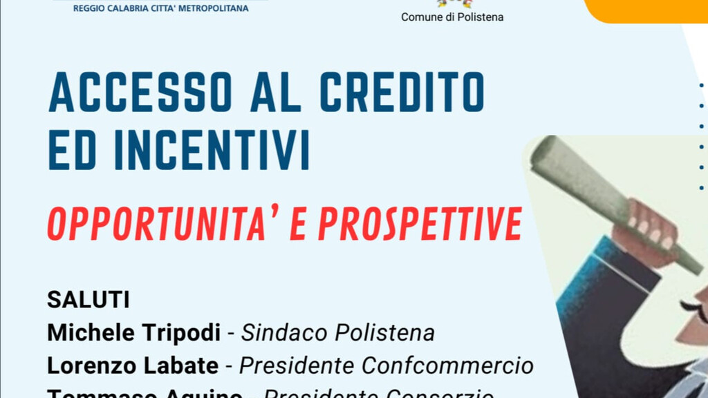 “Accesso al Credito e Incentivi. Opportunità e prospettive” è il titolo del seminario organizzato da Confcommercio Reggio Calabria e Comune di Polistena assieme ai vertici provinciali di Banca d’Italia, BCC Calabria Ulteriore, Odcec Reggio Calabria, Odcec Palmi, Assicomfidi.