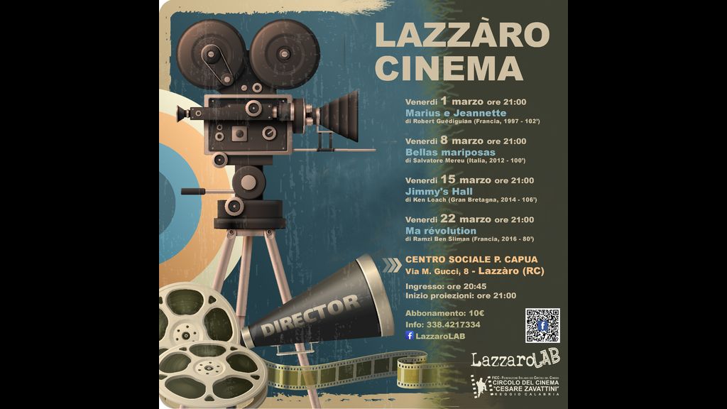 A partire da venerdì 1 marzo si svolgerà presso il Centro Sociale Paolo Capua di Lazzàro la prima rassegna cinematografica organizzata da un gruppo di liberi cittadini con la preziosa collaborazione del Circolo del Cinema Cesare Zavattini di Reggio Calabria.