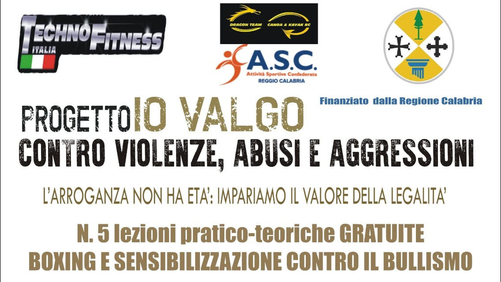 Da lunedì 25 Marzo 2024 prende il via l’iniziativa “Io Valgo” promossa dall’ASD APS Technofitness Italia ETS e finanziata dalla Regione Calabria, nell’ambito del Fondo per le politiche giovanili anno 2021, con la collaborazione della A.S.C di Reggio Calabria e dell’associazione pugilistica Dragon Team.