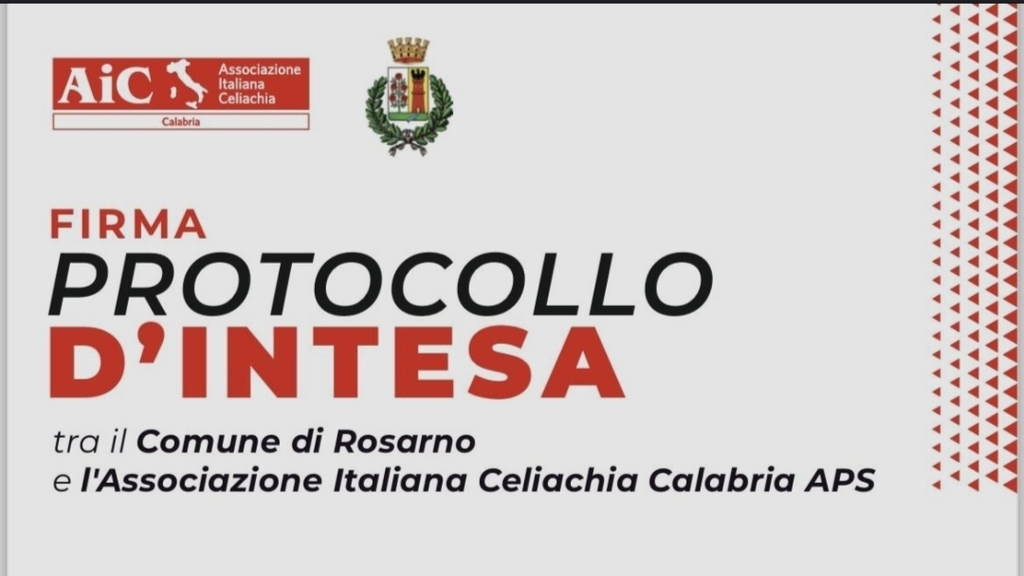 Si terrà il prossimo 15 aprile alle ore 16.30, presso l’Auditorium comunale in Rosarno, la sigla di un protocollo di intesa tra il Sindaco di Rosarno Pasquale Cutrì e la Presidente dell’Associazione Italiana Celiachia Calabria APS Giuseppina Grosso per sancire una stretta collaborazione e un’unità d’intenti tra le due istituzioni.