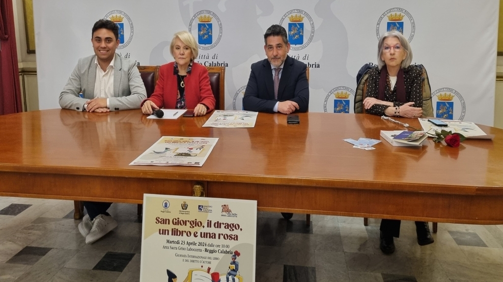 Il Salone dei Lampadari “Italo Falcomatà” di Palazzo San Giorgio ha accolto la conferenza stampa di presentazione dell’evento “San Giorgio, il drago, un libro e una rosa”. L’iniziativa si svolgerà nell’Area Sacra Griso Laboccetta, il prossimo 23 aprile, a partire dalle ore 10 e fino alle 20, in occasione della Giornata internazionale del libro e del diritto d’autore.