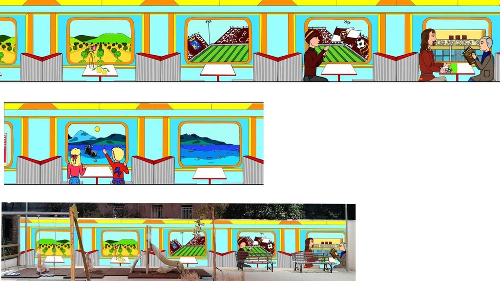 Con quasi il 44% di consenso e 5.553 voti registrati, la proposta progettuale 02 risulta essere la prescelta. Si tratta del lavoro prodotto da Vincenzo Solare della classe 2° D, un elaborato che rappresenta otto vagoni di un treno in viaggio visti dall'interno. In ognuno raffigurate le ambientazioni tipiche del quartiere Ferrovieri-Pescatori. I vagoni rappresentano l'Industria e il progresso dei ferrovieri che, dopo il terremoto del 1908, popolarono il quartiere. Dai finestrini riferimenti al mare e ai pescatori, giardini di bergamotto di Reggio Calabria, un campo sportivo con i colori e i riferimenti della Reggina. Tra viaggiatori che guardano il paesaggio anche dei riferimenti all’arte rappresentata dal Liceo artistico Preti-Frangipane.