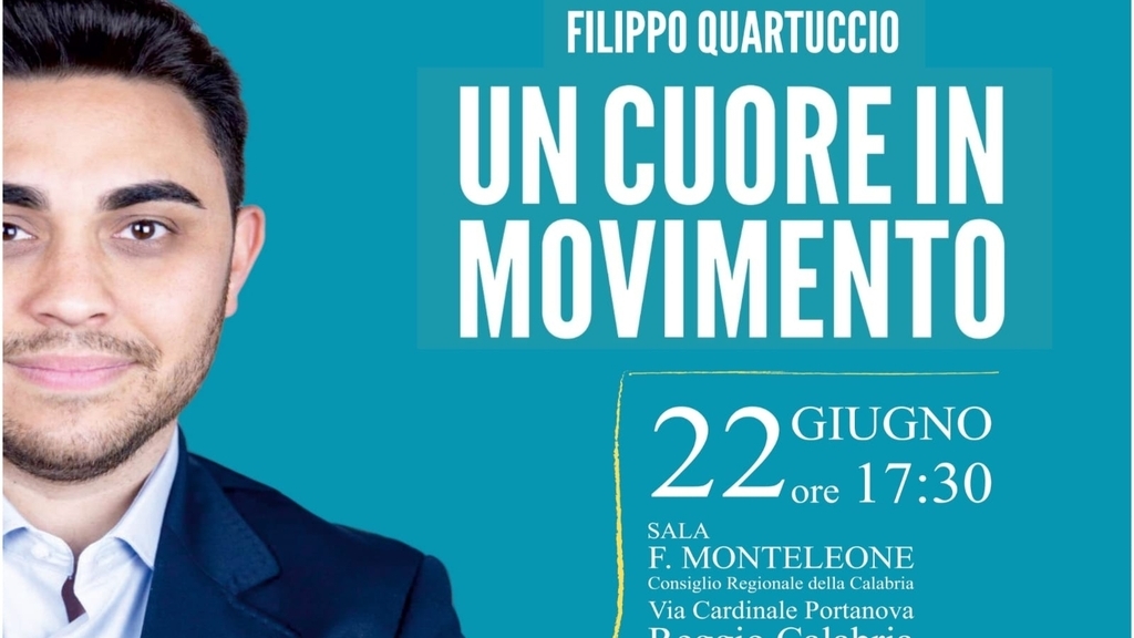 "Un Cuore in Movimento", verrà presentato a Reggio il libro d'esordio di Filippo Quartuccio