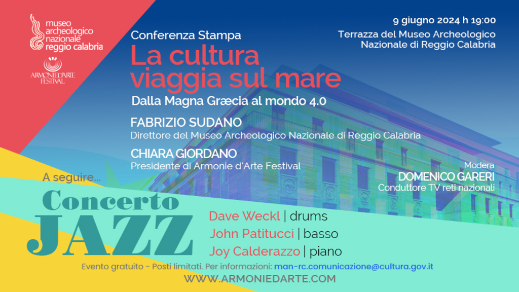 Prima una conferenza stampa per comunicare la visione programmatica del nuovo Direttore del Museo dott. Fabrizio Sudano che dialogherà con Chiara Giordano presidente della Fondazione Armonie d'Arte e direttore artistico del Festival che, giunto quest'anno alla XXIV edizione, dedicherà una sezione speciale al Museo di Reggio di Calabria. Questa collaborazione nasce dalla volontà di valorizzare il grande Patrimonio italiano oltre che calabrese, in un'ottica culturale che pone al centro una rinnovata narrazione e un diverso posizionamento del Mediterraneo nel dibattito socio culturale e socio economico globale.