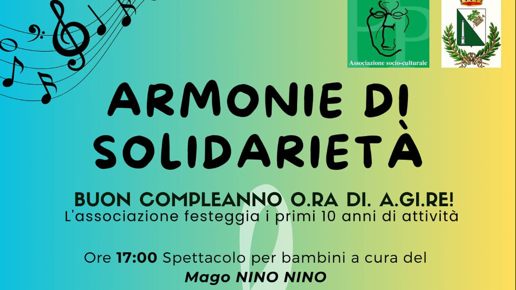 L’evento, patrocinato dal Comune di Villa San Giovanni, è inserito nel programma delle manifestazioni estive villesi. La serata vuole essere un momento di festa e di celebrazione dei primi dieci anni di attività di O.RA. DI. A.GI.RE., ma anche un tempo di incontro, confronto e dialogo, in cui tutti si sentano, a vario titolo, chiamati a fare la propria parte per la promozione del bene comune e lo sviluppo sociale dell’intera città.