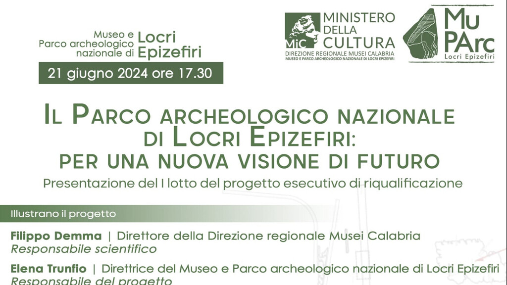 Tutti i dettagli del progetto di riqualificazione saranno illustrati con un evento pubblico dal titolo “Il Parco archeologico nazionale di Locri Epizefiri. Per una nuova visione di futuro” che si svolgerà al Museo archeologico il 21 giugno, alle ore 17.30. Scopo dell’iniziativa, presieduta dal Direttore della Direzione regionale Musei Calabria Filippo Demma - che è anche il responsabile scientifico dell’intervento -, è quello di restituire alla comunità il lavoro svolto finora dal gruppo di progettazione, condividendone strategie e obiettivi e illustrando i dettagli delle soluzioni progettuali e le fasi dell’imminente cantiere.