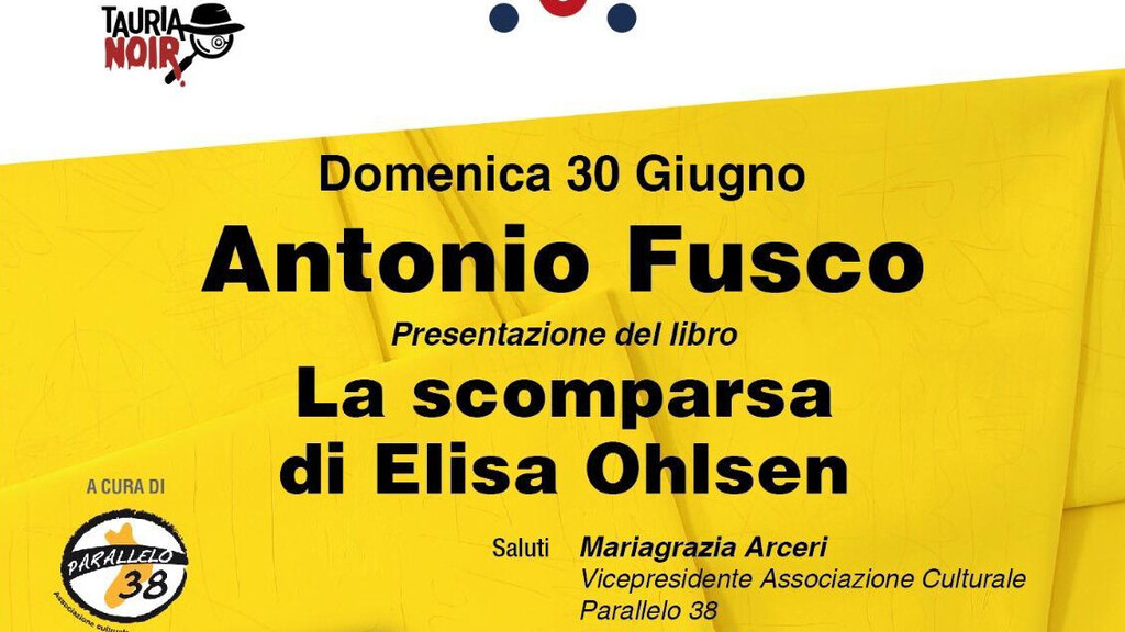 Domenica 30 Giugno alle ore 18,30 presso il giardino dello Square Cosmopolitan a Taurianova, Antonio Fusco presenterà il suo libro "La scomparsa di Elisa Ohlsen", edito Rizzoli, a cura dell'Associazione Parallelo 38, guidata dal Presidente Emanuela D'Eugenio, rientrante nella rassegna "Taurianoir" all'interno del ricco programma di Taurianova Capitale italiana del libro 2024.