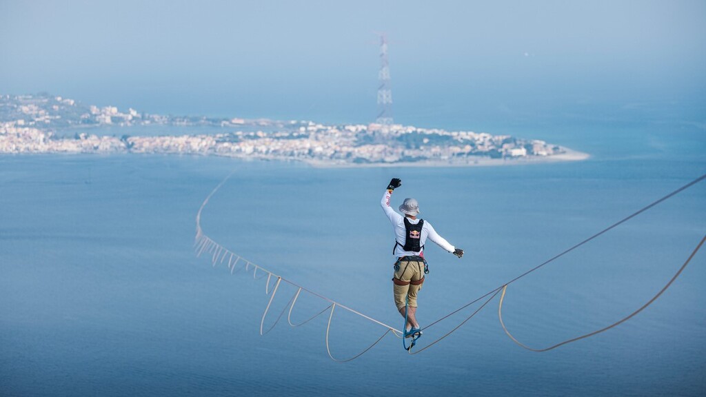 È dei giorni scorsi la spettacolare impresa dell’atleta estone campione di Slackliner Jaan Roose del team Red Bull, che ha attraversato lo Stretto di Messina su un nastro di acciaio di 1,9 centimetri di larghezza sospeso ad oltre 200 metri sul livello del mare, in balia di un vento infido e dispettoso. Ci sono volute quasi tre ore dalla Calabria per raggiungere la sponda siciliana, anche se, a circa 100 metri dall’arrivo, il giovane atleta, già 3 volte campione del mondo della specialità ha perso l’equilibrio ed è caduto non riuscendo ad aggiudicarsi il record mondiale di questa disciplina.