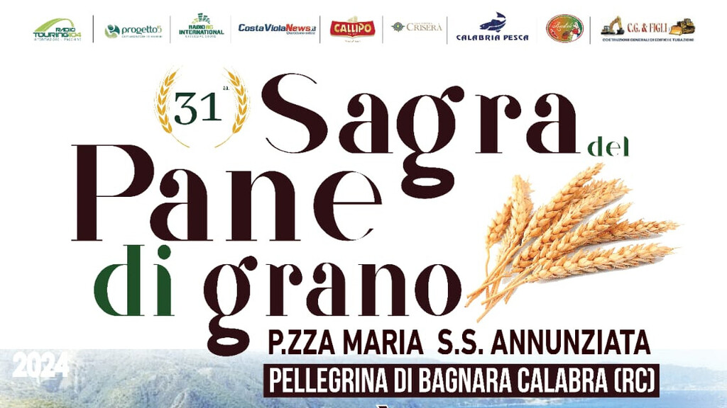 Martedì 13 Agosto, a Pellegrina di Bagnara Calabra, nella bellissima “Piazza Maria SS. Annunziata”, si svolgerà la 31ª Sagra del Pane di Grano, organizzata dall’ Associazione Pellegrinese Cultura Sport e Ambiente, con il patrocinio del Comune di Bagnara Calabra, della Regione Calabria, della Città Metropolitana di Reggio Calabria e del Galbatir. La Sagra del Pane di Grano è uno degli appuntamenti estivi più attesi, una manifestazione cresciuta di edizione in edizione, in grado di calamitare sulle colline che cingono Bagnara tanti visitatori provenienti dall’intera area metropolitana di Reggio Calabria e oltre.
