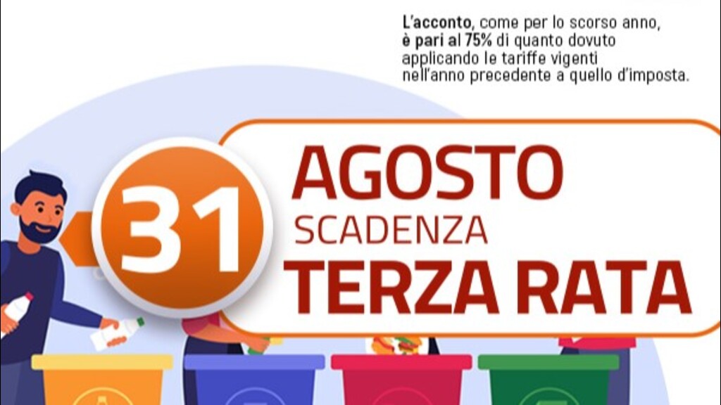 Hermes avvisa che è in scadenza, il prossimo 31 Agosto, il pagamento della terza rata della Tassa sui Rifiuti (TARI) per l'anno 2024 Acconto.