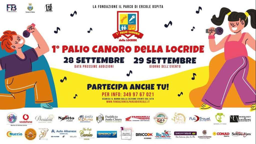 Cresce l’attesa e crescono i contenuti in vista della finale della prima edizione del Palio Canoro della Locride, in programma domenica 29 settembre nella sede del Parco di Ercole in contrada Romano a Siderno.