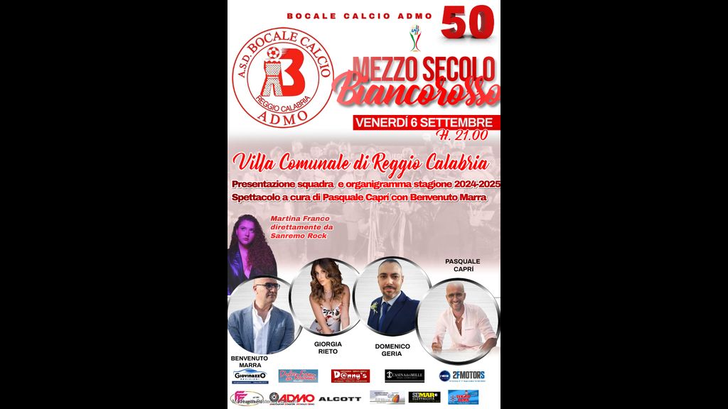 Mezzo Secolo Biancorosso. Mezzo Secolo di storia e passione. Mezzo secolo di Bocale Calcio Admo.