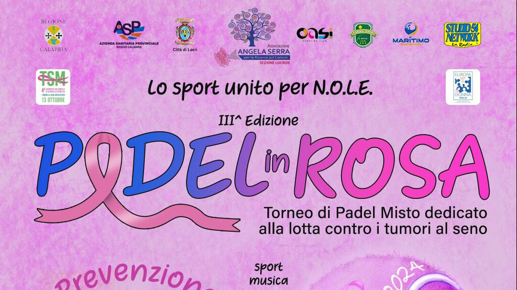 Torna il “Padel in rosa”, dedicato alla lotta contro il tumore al seno e a sostegno del progetto N.O.L.E. per la riqualificazione del reparto oncologia dell’Ospedale civile di Locri. L’evento sportivo, giunto alla terza edizione, promosso dall’associazione “Angela Serra–Sezione Locride” e dalla Città di Locri, si svolgerà domenica 13 ottobre 2024, sul lungomare Zaleuco, nell’ambito dell’Ottobre Rosa, iniziativa nazionale di sensibilizzazione alla prevenzione dei tumori femminili.