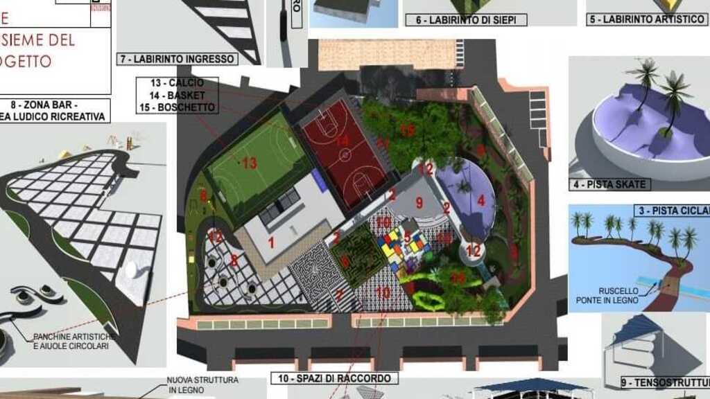 Il progetto comprende diversi elementi di grande impatto. Tra questi, una zona bar, un'area ludico-ricreativa, un labirinto artistico e uno di siepi, una pista da skate, panchine artistiche, aiuole circolari, nonché campi da calcio e basket, una pista ciclabile e una tensostruttura polifunzionale. Questi interventi si inseriscono in una visione complessiva che mira a creare uno spazio multifunzionale e accessibile per tutte le fasce di popolazione.