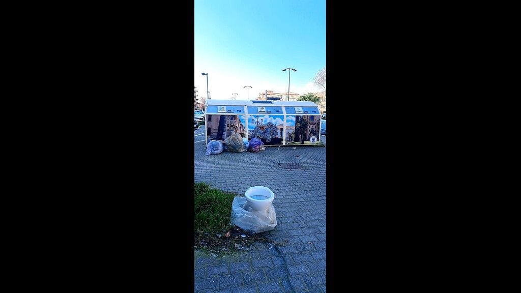 L'ennesimo scatto dell'inciviltá su tela mostrata in una foto scattata dalla redazione ReggioTv nella zona di San Brunello. Sacchetti di spazzatura gettati sul marciapiede vicino a quella che dovrebbe essere un'isola ecologica.