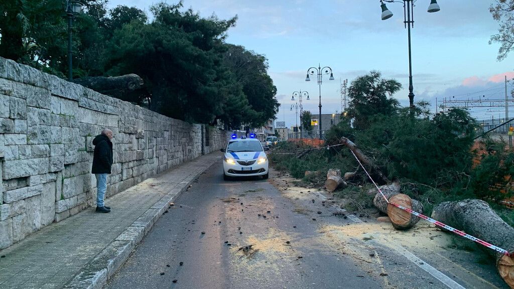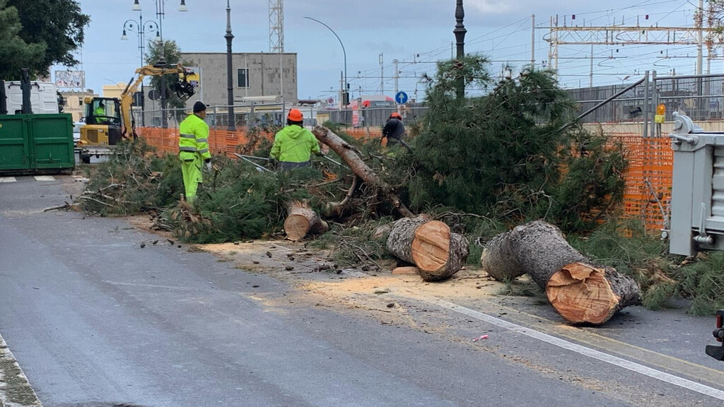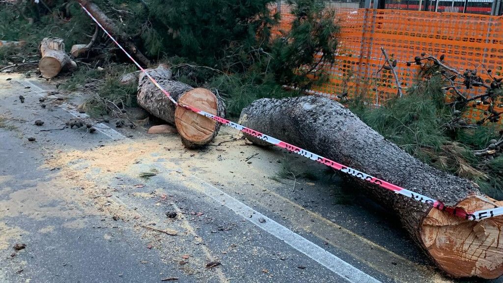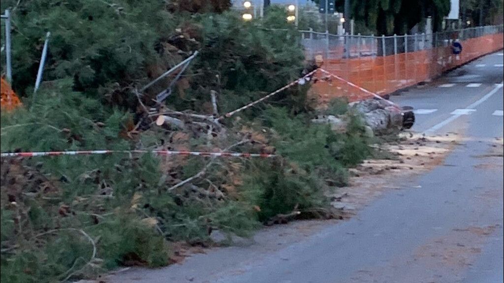 Sulla Via Marina Alta un pino di grandi dimensioni è caduto sul percorso dell'handbike, prima dell'inizio della gara.