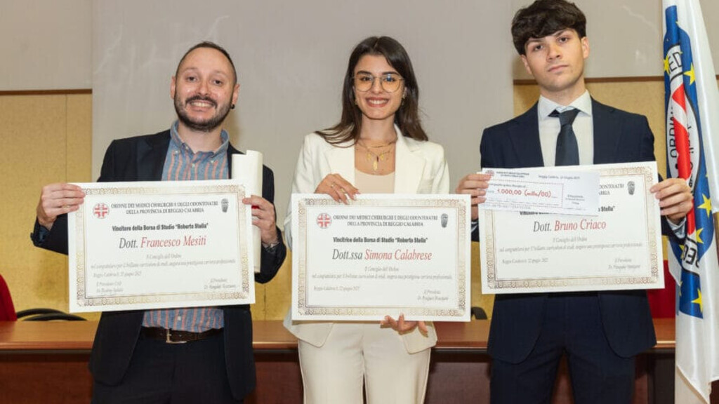 Hanno le idee ben chiare, amano il loro lavoro ma soprattutto, vogliono lavorare nella loro terra natia. Sono i giovani medici Simona Calabrese (medico chirurgo), Bruno Criaco (medico chirurgo), Francesco Mesiti (odontoiatra), i tre vincitori delle borse di studio “Roberto Stella”, primo medico deceduto in Italia a causa del Covid 19, assegnate domenica scorsa dall’Ordine dei Medici Chirurghi e degli Odontoiatri della Provincia di Reggio Calabria.