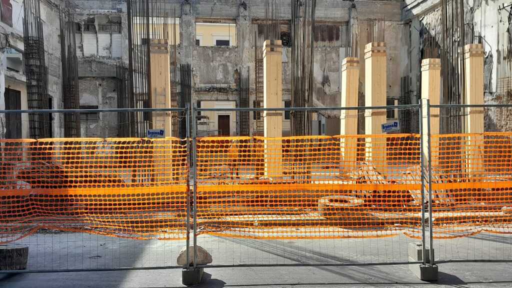 3. La ristrutturazione dell’ex Cinema Orchidea, sempre sulla via Marina alta, che ha comportato la quasi totale demolizione dell’edificio: la posa dei nuovi pilastri fa ipotizzare spazi interni piccoli e poco funzionali per una «casa della cultura» che avrebbe invece bisogno di grandi ambienti.