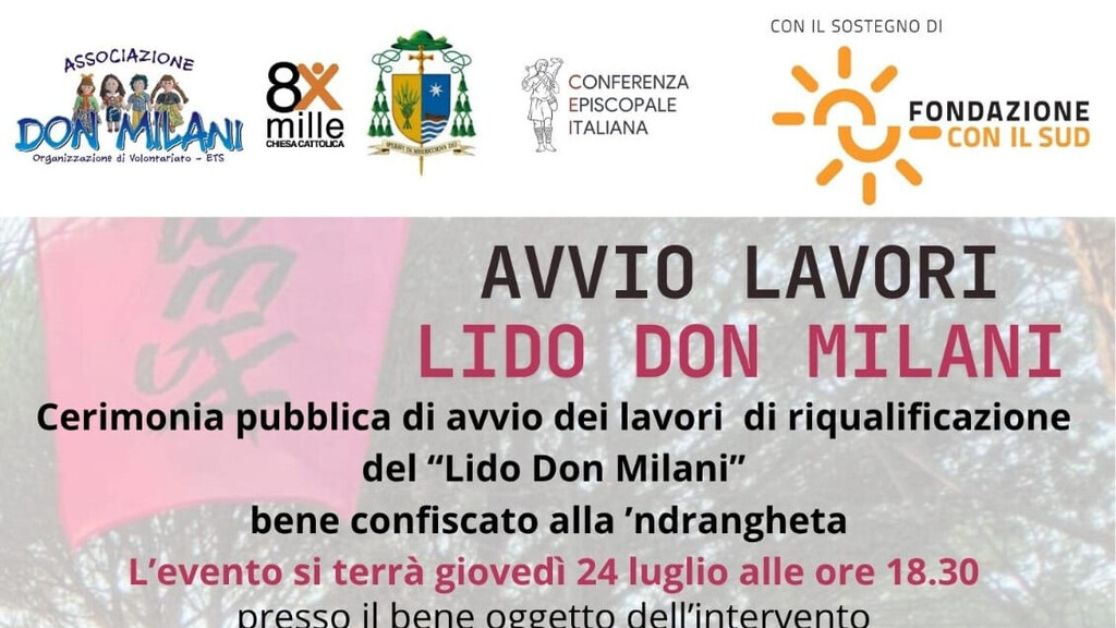 L'Associazione Don Milani OdV ETS, da anni impegnata nella promozione della legalità e nel riutilizzo sociale dei beni confiscati alla criminalità organizzata, annuncia la cerimonia pubblica di avvio dei lavori di riqualificazione del Lido Don Milani, sito in Località Romanò, sul lungomare nord di Marina di Gioiosa Ionica.
