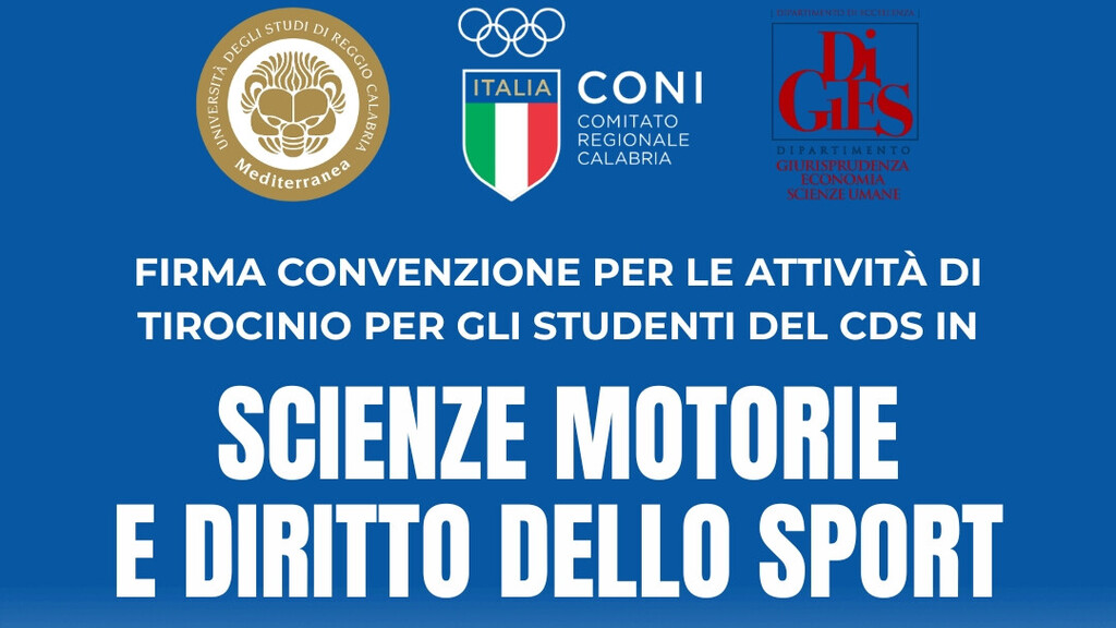 Facendo seguito alle intese intercorse in fase di accreditamento e strutturazione del corso di studi, il CONI Calabria conferma la partnership con il DiGIES per offrire agli studenti del corso di studi in Scienze Motorie e Diritto dello Sport l’opportunità di svolgere i tirocini curricolari presso le strutture ed a fianco dei professionisti del Comitato Regionale.