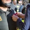 La cerimonia è stata preceduta da un momento che i Vigili del Fuoco del 100° corso hanno vissuto unitamente ai propri familiari, alla presenza del Direttore Regionale: la benedizione degli elmi, impartita da Mons. Tommaso Buccafurni, Vicario Generale della Diocesi di Lamezia Terme, cui ha fatto seguito il momento del “cambio distintivo”. Un familiare per ciascun Vigile del Fuoco, ha raggiunto il proprio congiunto nello schieramento ed ha provveduto a rimuovere dall’uniforme di servizio il distintivo riportante la qualifica di “Vigile del Fuoco in Prova” per posizionare al suo posto la qualifica di “Vigile del Fuoco”, vivendo un momento ricco di emozioni.