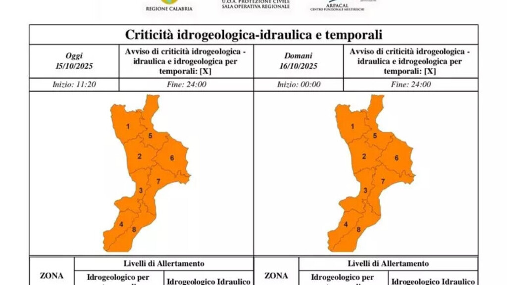 Autore Redazione Web | mer, 15 ott 2025 17:30 | Allertameteo Calabria Protezione Civile