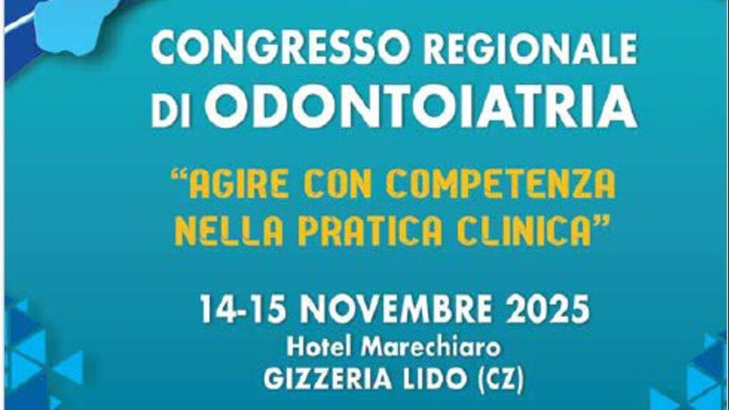 L’odontoiatria calabrese si dà appuntamento a Gizzeria Lido (Catanzaro) per il Congresso Regionale di Odontoiatria dal titolo “Agire con competenza nella pratica clinica”, in programma venerdì 14 e sabato 15 novembre all’Hotel Marechiaro, sotto la presidenza di Salvatore De Filippo, Giuseppe Guarnieri ed Enrico Cataneo. L’iniziativa è promossa da ANDI Calabria, in collaborazione con le Commissioni Albo Odontoiatri delle cinque province calabresi, con il patrocinio dell’Ordine dei Medici Chirurghi e degli Odontoiatri della Calabria.