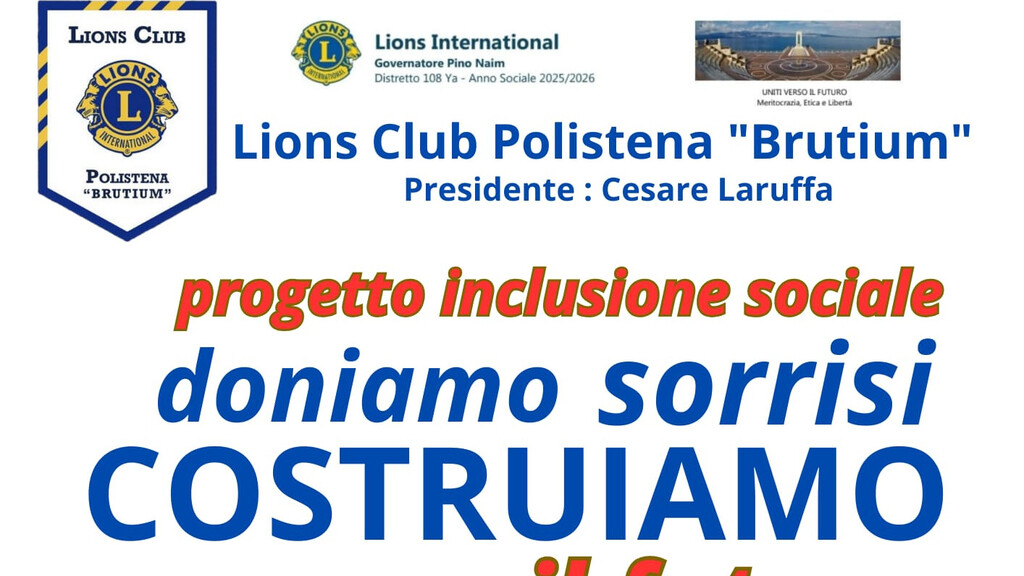 Il Lions Club Polistena Brutium annuncia l’avvio ufficiale del progetto di inclusione sociale “Doniamo un sorriso, costruiamo il futuro”, un’iniziativa ad alto impatto sociale resa possibile grazie a un finanziamento, in forma di sponsorizzazione, pari a euro 50.500,00.