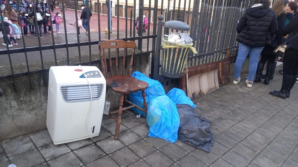 Proprio davanti all’ingresso della scuola “Falcomatà – Archi”, qualcuno ha pensato di lasciare un “regalo di Natale” che di festoso non ha nulla: una stufa abbandonata, una sedia rotta e diversi sacchi di immondizia. Un gesto che non può essere liquidato come semplice inciviltà, ma che rappresenta un vero e proprio atto di deturpazione ambientale.