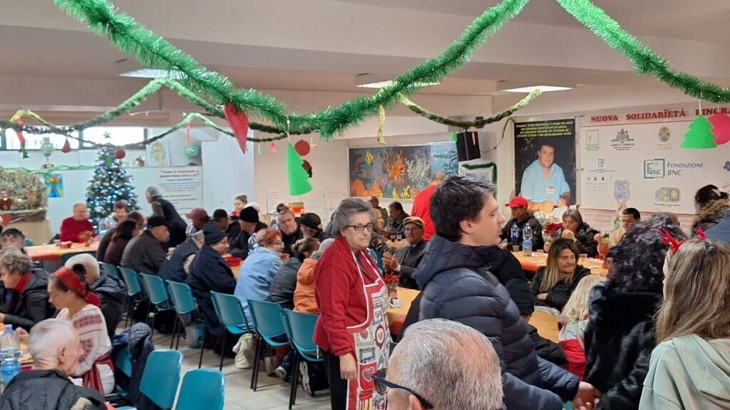 Una lunga tavolata allestita nel salone della struttura ha accolto anziani soli, famiglie in difficoltà, persone senza fissa dimora e cittadini che vivono condizioni di marginalità sociale, offrendo non solo un pasto caldo ma anche un momento di condivisione e vicinanza umana, particolarmente significativo durante le festività natalizie.