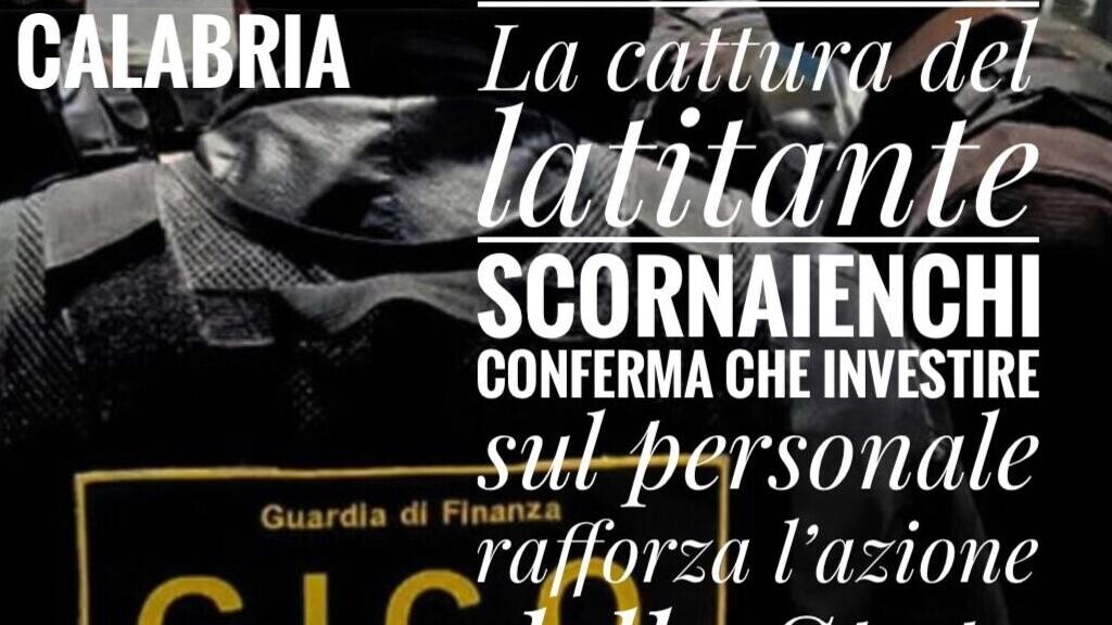 La cattura del latitante Giuseppe Scornaienchi, avvenuta nelle campagne di Cetraro, rappresenta un risultato di assoluto rilievo nella lotta alla criminalità organizzata e un segnale concreto della presenza efficace e determinata dello Stato sul territorio calabrese.