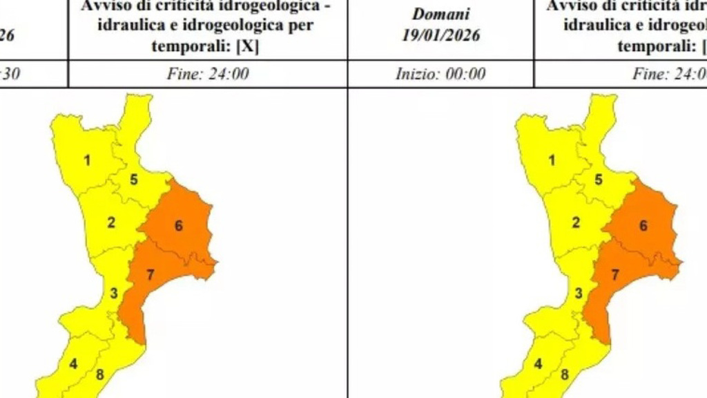 La protezione civile, insieme al centro funzionale multirischi Arpacal, ha emesso un'allerta meteo arancione, a partire dalle 12:30 di oggi e per tutta la giornata di domani, sulle aree Ioniche del Catanzarese e Crotonese, mentre altrove è stata emessa un'allerta gialla.