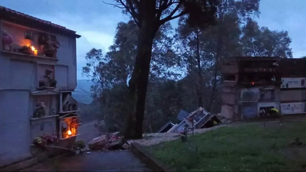 La pioggia caduta nelle ultime ore ha causato il crollo di una parte del cimitero vecchio di San Mauro Marchesato. Una ventina di bare sono finite nel burrone sottostante.