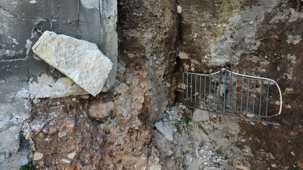 Le recenti precipitazioni hanno accelerato l’erosione del terreno, portando al distacco di porzioni di roccia e di muratura che si sono riversate a valle, aumentando il rischio per abitazioni e strade sottostanti.