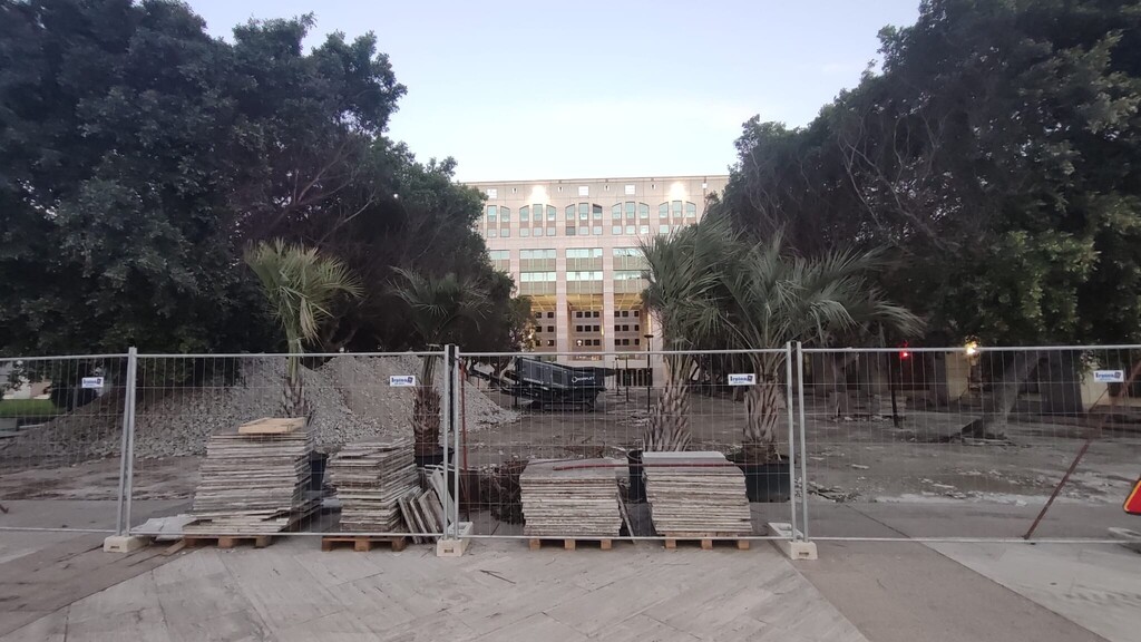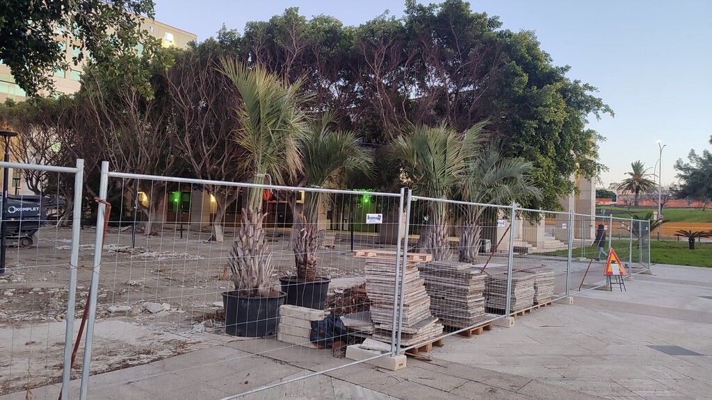 Nuove palme sono già state portate nel Piazzale e verranno piantate presente. Così come i blocchi di cemento che sono pronti per essere fissati.