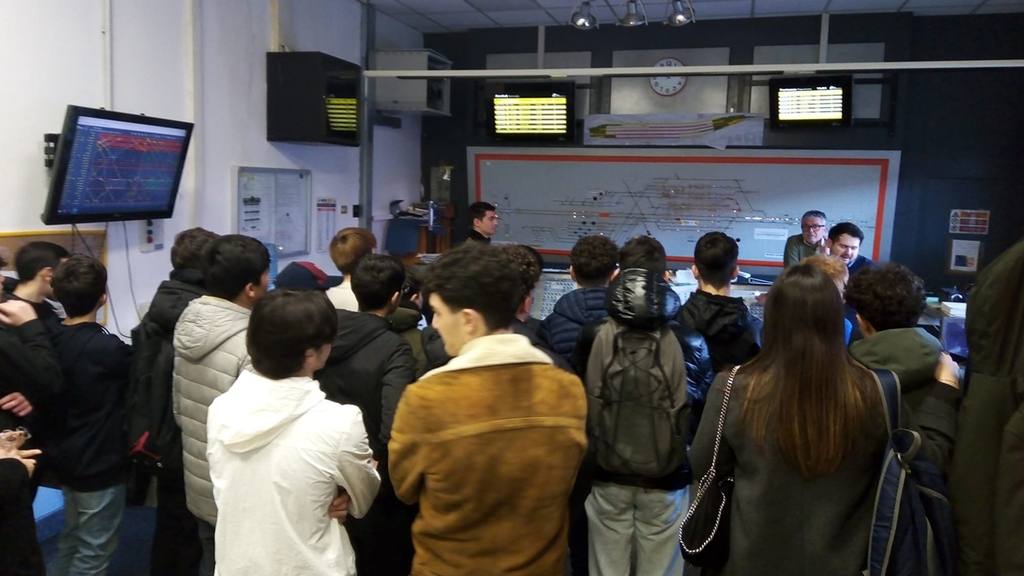 Divisi in tre gruppi, a turno i partecipanti hanno visitato l’ufficio della Dirigenza Movimento di Rete Ferroviaria Italiana, cuore operativo della gestione della circolazione ferroviaria, la Sala Blu, struttura che da oltre dieci anni offre assistenza ai viaggiatori a ridotta mobilità, per poi incontrare i colleghi della Biglietteria e Assistenza di Trenitalia e quelli di FS Security, che hanno illustrato le loro attività, anche quelle di front office e back office.