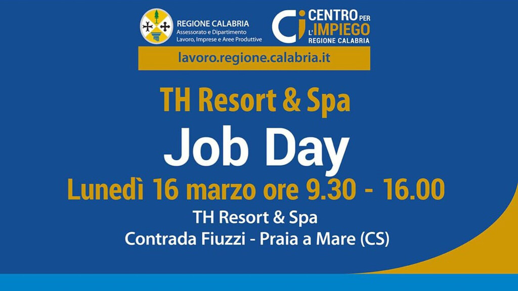 Lunedì 16 marzo (ore 9.30 – 16.00): TH Resort & Spa, in collaborazione con il Centro per l’impiego di Paola. L’evento si terrà presso la sede del resort in Contrada Fiuzzi a Praia a Mare (CS). Si ricercano 39 addetti.