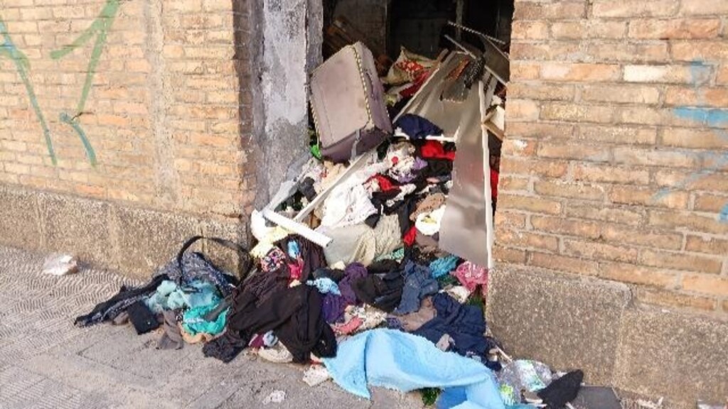 Dalle foto inviate alla redazione si nota chiaramente la presenza di vestiti, valigie, mobili, sedie in plastica e altri oggetti abbandonati e accatastati all’interno della struttura.