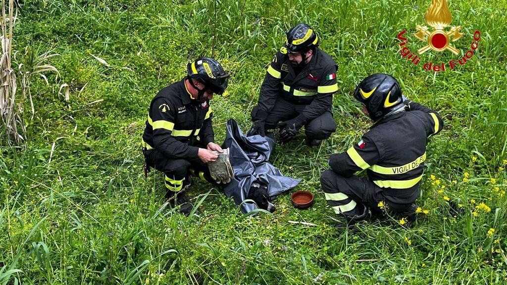 I Vigili del Fuoco, dopo aver creato un percorso per raggiungere l'animale, lo hanno trasportato fino alla strada e consegnato a un veterinario per le necessarie cure.