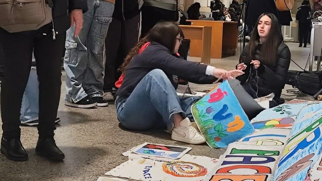 “In tutta Italia – ha continuato- si è costruita una rete diffusa con l’obiettivo di manifestare contemporaneamente il dissenso rispetto al riarmo e alla guerra che, negli ultimi anni, è diventata una presenza costante nelle nostre vite. L’idea dell’arazzo, pertanto, nasce da una pratica storicamente legata alle donne: tessere, cucire, mettere insieme; un gesto simbolico che si contrappone alla distruzione e alla lacerazione”.